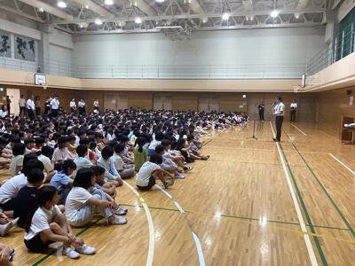 8月27日(水)体育館で2学期の始業式を行いました。体育館は冷房が