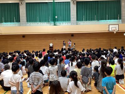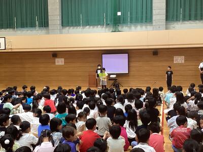 全校児童に集まってもらい終業式を行いました。1学期を振り返って私の方から