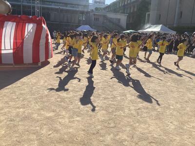 子どもたちはみんなはりきって楽しそうに踊っていました。お祭りにふさわしい