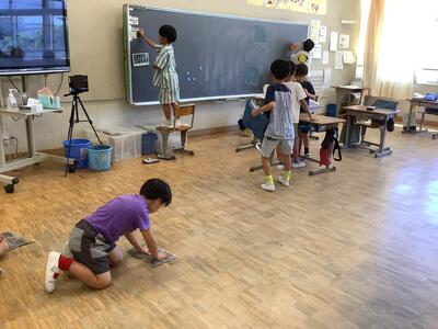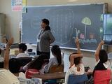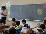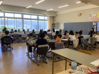 教室では夏休みの思い出を話し合ったり、自由研究を発表したりしていました。