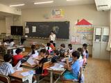 2学期はじめての「おはなしや」ボランティアさんによる朝の読み聞かせです。