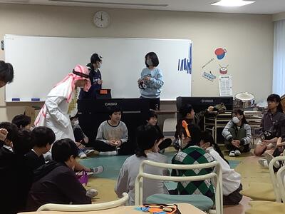 あれ! この仮装は大人ですね。誰でしょうか。先生も子どもと一緒に