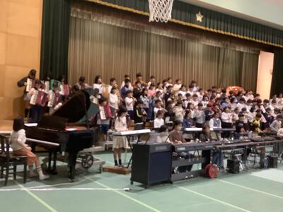 子どもたち同士がお互いに演奏しあい、そして鑑賞しあい音楽を楽しみます。どの学年も