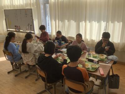 配膳していました。豪華なメニューの前に子どもたちの気持ちも