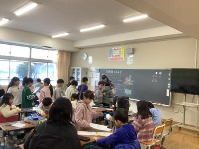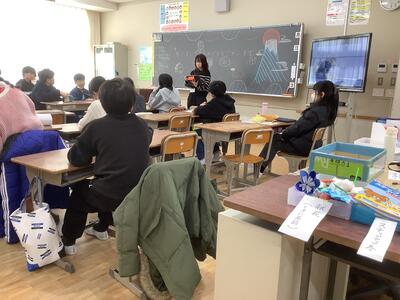 先生のお話を聞いたり、宿題を出したり、クイズやゲームをして