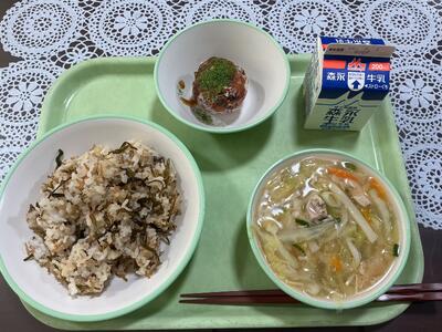 2月19日(木)の給食です。あんかけのうどんは温まります。