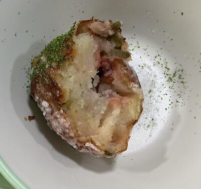 これはたこ焼きのように見えて材料はポテトを丸く揚げた