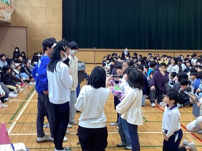 この後、各学年からプレゼントを渡しました。