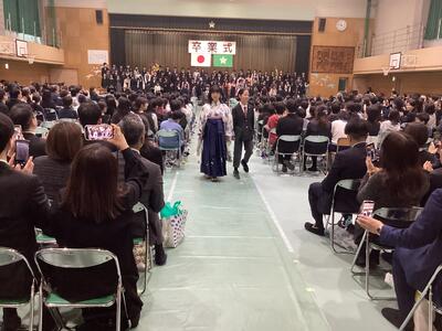 第153回卒業式 投稿: ルーム管理者 (14:24) 3月19日(木)体育館にて卒業式が行われました。卒業生は114名です。 良い顔をして元気に巣立っていきました。 よろこびの詩「呼びかけと歌」 卒業証書授与 卒業生退場 教室にて 5年生に身送られながら校舎を後に Tweet -