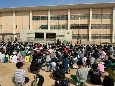 学年ごとに集まって学年集会をしていました。