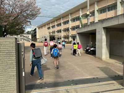 学校に入っていきます。1年生、教室に入ってから、自分のことは