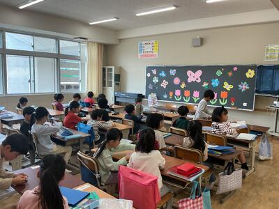 2年生は2階です。一つお兄さん、お姉さんの顔つきになっていました。