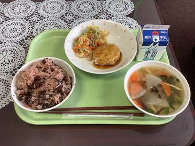 今日はお祝い献立です。もうすぐ、6年生は卒業です。みんなで食べられる給食は、今日で最後です。6年間、いろいろな思い出ができたかな?1年間の振り返りもしましょうね。デザートはハーゲンダッツのアイスクリームです。アイスクリームが食べられるタイミングになったら、アイスクリームの引換券を持って給食室に来てくださいね。