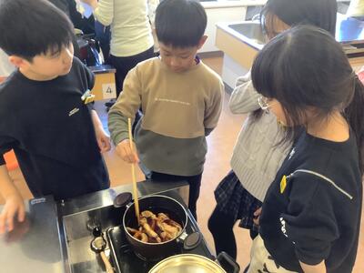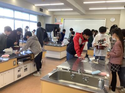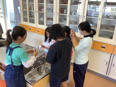 少し先取りの体験です。栄養士の先生の指導のもと校務の先生もお手伝いいただき