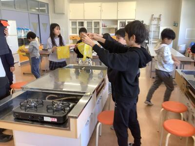 鍋の中で弾ける様子に驚いている子もいました。楽しそうでした。
