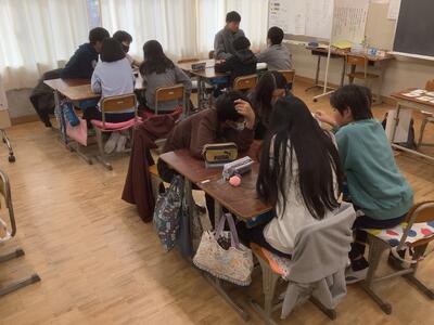 12月15日(月)6年生が高校生と一緒に学習をしました。