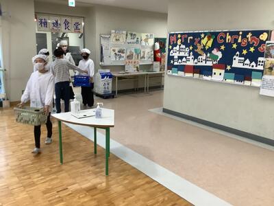 12月22日(月)2学期最後の給食です。「当たり前のように出てくるけど、感謝しないといけないよね」しっとりと食べるクラスやおかわりじゃんけんに熱が入るクラスもありました。