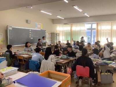 5年生もその話を聞いて、自分の言葉で質問を返したり、感想を述べたりして