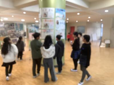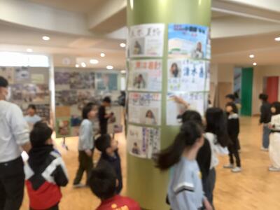 ポスター掲示をしていました。場所はみんなが通る玄関です。