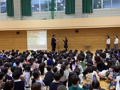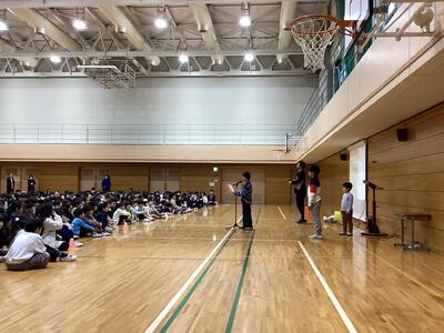 6年生は体育館で、4年生は教室で行っていました。